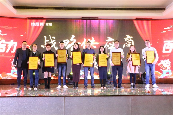 過去一年,詩尼曼不斷探索美好,為經銷商賦能,為消費者美好生活賦能,對詩尼曼來說,“美好”是承擔起企業責任與社會責任,“美好”也是與美好者一起,攜手奔向未來。詩尼曼董事長辛福民與公司高管登臺高頌時代贊歌,舉杯祝酒,共享收獲的喜悅,展望未來美好藍圖。