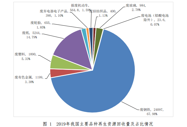 2019 年,在綠色發展理念引領下,國家對再生資源重視程度明顯提高,再生資源領域政策支持和制度保障力度加大,多項重大利好政策相繼出臺,持續為行業注入增長動力,推動再生資源行業向集聚化、集約化方向發展。1 月,國家發展改革委辦公廳、工業和信息化部辦公廳發布《關于推進大宗固體廢棄物綜合利用產業集聚發展的通知》(發改辦環資〔2019〕44 號),提出建設一批具有示范和引領作用的綜合利用產業基地,促進產業集聚,提高資源綜合利用水平。4 月,工業和信息化部辦公廳、國家開發銀行辦公廳聯合發布《關于加快推進工業節能與綠色發展的通知》(工信廳聯節〔2019〕16 號),明確提出支持實施大宗工業固廢綜合利用項目,推動廢鋼鐵、廢塑料、退役新能源汽車動力蓄電池等再生資源的綜合利用。5 月,《報廢機動車回收管理辦法》(國務院令第715號)取消了報廢汽車回收拆解企業總量控制要求,實行“先照后證”制度,允許“五大總成”再制造再利用和舊件流通,報廢機動車的收購價格改為由市場主體自主協商定價,通過規范報廢機動車回收拆解行為,暢通汽車產業循環發展鏈條,促進報廢機動車回收拆解行業的快速發展。2006年以來,國家標準委等14部門先后發布《2005-2007年資源節約與綜合利用標準發展規劃》、《2008-2010 年資源節約與綜合利用標準發展規劃》,其中廢舊產品及廢棄物回收與再利用重點項目 100 多項。在政府、行業協會以及企業等多方的共同努力下,再生資源行業標準化建設取得階段性進展,截至 2019 年底,我國再生資源回收利用領域現行的國家標準 164 項、在研的國家標準計劃 38 項、現行的行業標準 139 項、發布團體標準 70 項,已形成國標與行標相結合,強制性與推薦性相協調,覆蓋廢鋼鐵、廢有色金屬、廢塑料、廢紙、廢舊紡織品、廢棄電器電子產品等多個再生資源品種,涵蓋回收和利用領域的標準體系,基本滿足了產業發展對標準化工作的需求,有效促進了資源循環利用產業規模化、規范化發展,并將繼續推動產業調整升級、轉變經濟增長方式、提升國際競爭力。近年來,我國再生資源回收行業規模明顯擴大,全國廢鋼鐵、廢有色金屬、廢紙、廢塑料、廢輪胎、廢棄電器電子 產品、廢玻璃等主要品種再生資源回收總量逐步攀升。從全國來看,大部分地區已建立起以回收網點、分揀中心和集散市場(回收利用基地)為核心的三位一體回收網絡。據不完全統計,河北、山西、遼寧、黑龍江、江蘇、安徽、江西、山東、河南、湖北、湖南、廣東、海南、甘肅、青海、寧夏、新疆、重慶、廈門、寧波、大連、青島等 22 個省、市、自治區和計劃單列市,目前已形成回收網點約 15.96 萬個,分揀中心 1837 個,集散市場 266 個,分揀集聚區 63 個,回收網絡已初具雛形。一批龍頭企業迅速發展壯大,創新能力、品牌影響力和示范帶動作用不斷凸顯,垃圾分類與再生資源回收銜接模式、“互聯網+回收”模式、手機 app 或熱線平臺服務模式逐步成熟,集回收、分揀、集散為一體的再生資源回收體系逐漸完善。在政府引導和市場化機制運行下,上海、廣東等省市生活垃圾分類工作穩步開展。結合垃圾分類工作的開展,多個省市鼓勵有條件的地區、企業或公共場所開展再生資源回收系統與生活垃圾收運系統“兩網銜接”,鼓勵和推動回收體系與垃圾收運體系各環節有機結合,通過環衛系統與再生資源回收企業的合作,推動垃圾分類回收體系和再生資源回收體系的融合,如浙江虎哥環境有限公司打造以生活垃圾分類服務為核心的社區生活服務平臺,通過精細分類,解決廢塑料、廢玻璃等低價值再生資源回收問題,大幅提高再生資源回收率;飛螞蟻、四川銀谷智聯和深圳恒鋒等企業紛紛進入社區,將廢舊衣物回收融入網絡,規范廢舊衣物回收、提高回收量的同時,垃圾減量也取得明顯成效,實現資源回收與生活垃圾分類協同發展。2016 年,商務部、國家發展和改革委員會等 6 部門聯合發布《關于推進再生資源回收行業轉型升級的意見》,明確鼓勵企業利用互聯網、大數據和云計算等現代信息技術和手段,實現信息流與物質流的統一,在政策引導下,行業組織和企業積極探索開發再生資源回收信息化平臺。中國物資再生協會聯合回收利用單位、監管部門為醫療機構建設輸液瓶(袋)回收溯源體系,監管部門可通過管理數據平臺查看管轄地內的醫療機構輸液瓶(袋)產生、交接轉運和回收利用情況,實現數字化遠程監管和分級管理。輸液瓶(袋)分類投放、暫存、轉運、再利用的全生命周期追溯體系可有效杜絕輸液瓶(袋)違規利用,避免資源流入小散亂企業,大大提升了行業規范化水平。由于再生資源回收行業經營人員自身素質不高、場地簡陋、安全環保設施差以及稅收上繳少、效益低等原因,各地政府對再生資源回收項目的態度“冷熱不均”,目前某些地區對再生資源回收行業存在偏見,限制再生資源回收處理企業發展,有些地方干脆一禁了之,不允許再生資源回收利用企業落戶。由于再生資源來源廣泛、回收路徑復雜,目前國內回收企業普遍規模較小,設備簡陋,技術落后,再生資源分揀仍由人工進行粗略分類,不同類型、不同系列原料難以有效分離,下游企業利用過程仍需要花費人力和資金進行預處理,造成回收環節成本高,再生資源回收利用率低。