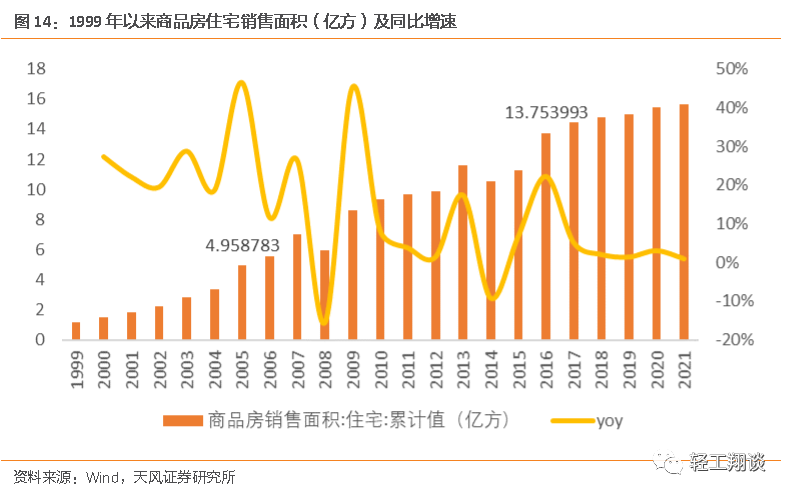 根據(jù)我們測算,2022/2023/2024/2025年全國存量更新需求占比約為19%/20%/22%/25%/28%,每年存量更新需求約為338萬套/375萬套/439萬套/517萬套。假設(shè)新成交商品住房15年翻新一次,2020年后正好迎來2005年開始的新房銷售高峰,05-21年我國新房銷售規(guī)模屢創(chuàng)新高,其中08-15年規(guī)模增幅最顯著,基于此,我們認(rèn)為未來3年存量房更新需求或迎顯著上升。