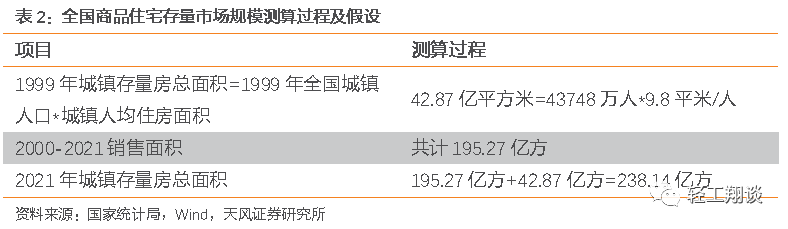 全國存量房規(guī)模21年末約238.1億方。按國家統(tǒng)計(jì)數(shù)據(jù),1999年全國城鎮(zhèn)人均住宅面積9.8平米/人,對(duì)應(yīng)城鎮(zhèn)存量住宅規(guī)模42.87億方,假設(shè)套均面積90平米/套,存量住宅規(guī)模為4764萬套。在此基礎(chǔ)上,累加每年商品住宅銷售面積,2021年我們保守預(yù)計(jì)全國城鎮(zhèn)有效存量商品住宅市場規(guī)模為238.1億方。