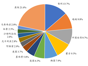圖5 2021年我國刨花板出口市場占比(以出口量計算)