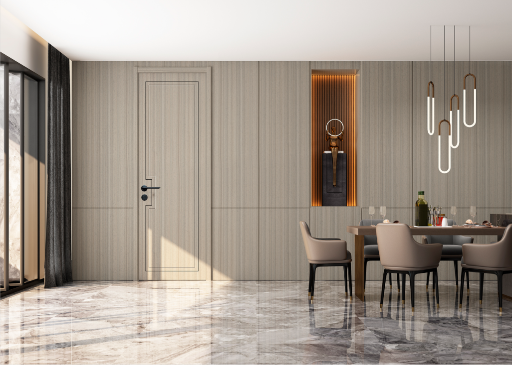 盈康世家可定制門墻一體化定制(木門、墻板、合金門同款同色),讓美學與工藝完美糅合,整體空間和諧有趣,有效提升空間整體美感。