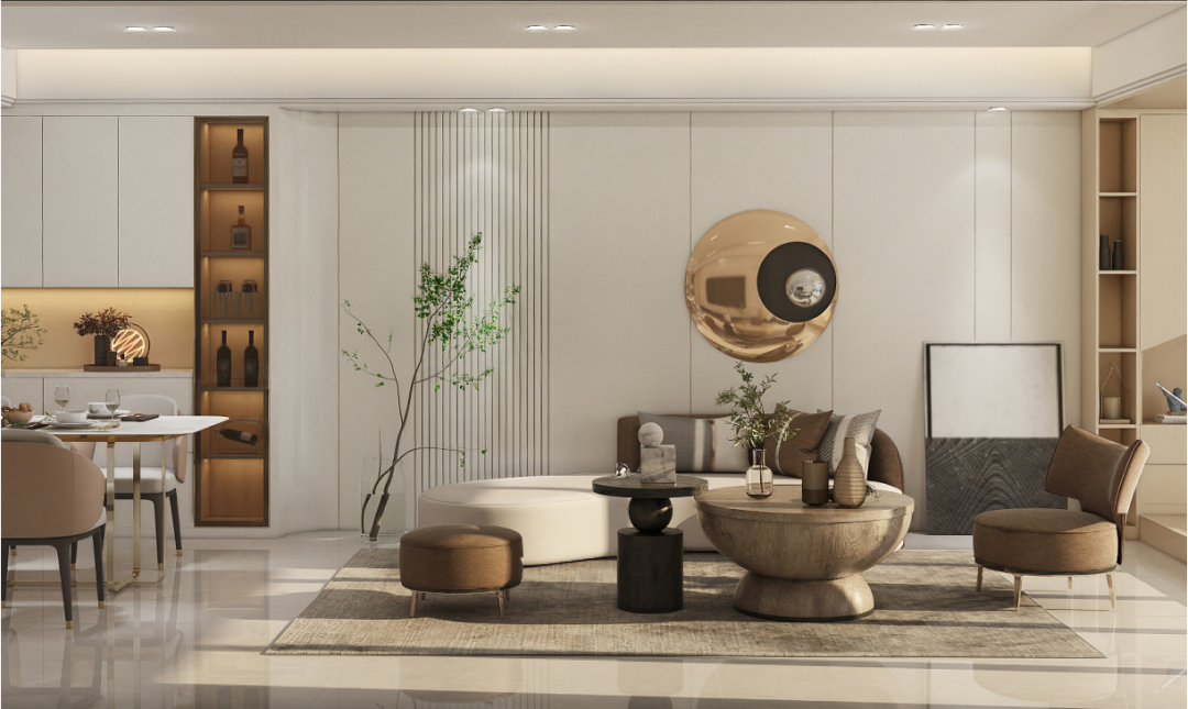 整體空間選擇安格爾直紋來作為主色系,木門與延續的墻板形成整體,延伸了室內空間感,營造出簡約質感的生活氛圍。