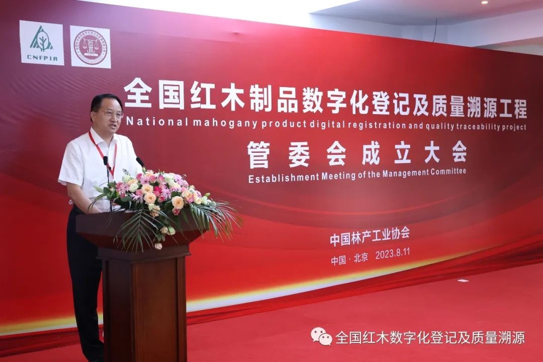 大會(huì)聽(tīng)取了工程管委會(huì)籌備組組長(zhǎng)楊飛對(duì)管委會(huì)籌備工作和工程建設(shè)進(jìn)展情況的報(bào)告。報(bào)告顯示,全國(guó)紅木制品數(shù)字化登記及質(zhì)量溯源工程的調(diào)研論證工作歷時(shí)3年;2023年5月4日,由北京森泰眾誠(chéng)標(biāo)準(zhǔn)化技術(shù)有限公司作為主要起草單位的《紅木制品證書(shū)規(guī)范》團(tuán)體標(biāo)準(zhǔn)正式獲得協(xié)會(huì)標(biāo)委會(huì)立項(xiàng)批準(zhǔn);2023年5月8日,國(guó)家林草局改革發(fā)展司正式下發(fā)了《關(guān)于實(shí)施全國(guó)紅木制品數(shù)字化登記及質(zhì)量溯源工程意見(jiàn)的函》,肯定了工程的重要作用并對(duì)工程強(qiáng)化組織領(lǐng)導(dǎo),健全工作機(jī)制,科學(xué)制定標(biāo)準(zhǔn)等提出了明確要求。為確保工程組織實(shí)施的科學(xué)性,2023年7月,由中國(guó)林產(chǎn)工業(yè)協(xié)會(huì)提出,由北京森泰眾誠(chéng)標(biāo)準(zhǔn)化技術(shù)有限公司組織實(shí)施的《全國(guó)紅木制品數(shù)字化登記及質(zhì)量溯源研究課題》正式獲得國(guó)家林草局科技司的立項(xiàng)批準(zhǔn)。