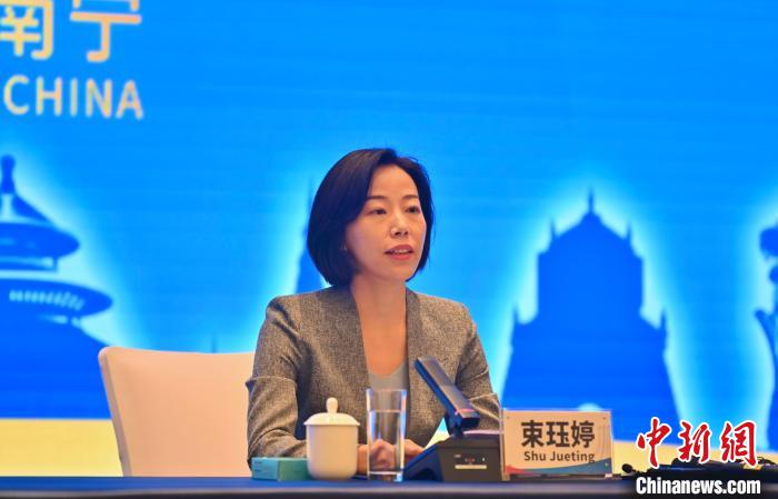 9月15日,第20屆中國-東盟博覽會(huì)、中國-東盟商務(wù)與投資峰會(huì)新聞吹風(fēng)會(huì)在廣西南寧市舉行。圖為中國商務(wù)部新聞發(fā)言人束玨婷介紹相關(guān)情況。 中新社記者 俞靖 攝