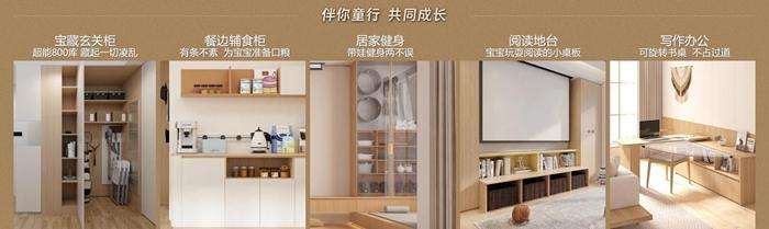 晴川木語——針對新手爸媽,主打收納、陪伴、安全與玩耍。自然治愈的原木風,全屋柜類斜切免拉手、可開合圓弧門,搭配柔和線條的配套家具,細心呵護避免孩童磕碰。玄關(guān)柜藏起一切凌亂更清爽;用餐邊輔食柜有條不紊為寶寶準備口糧;健身收納區(qū)讓帶娃健身兩不誤;閱讀地臺給寶寶足夠的玩耍閱讀空間;可旋轉(zhuǎn)書桌不占過道,在小家也能舒適辦公。全面兼顧家庭成員的生活、工作所需,打造與孩子共同成長的有愛空間。